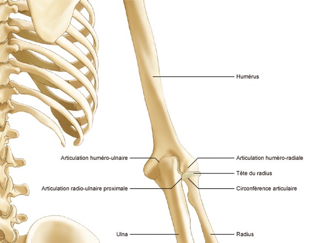 Le radius est l’un des 2 os de l’avant-bras : il s’articule avec le cubitus et l’humérus. Ces articulations, appelées radio-cubitale et huméro-radiale, favorisent les mouvements de flexion et de pronosupination du coude.